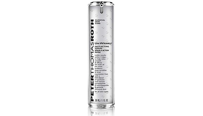 Peter Thomas Roth bukanlah merk kosmetik pendatang baru, Un-Wrinkle Fast-Acting Serum dibuat dari enam bahan aktif yang bermanfaat untuk kulit wajah. Bahan aktif dengan Neuropeptida dan Anti Penuaan Peptida mampu melawan tanda penuaan yang terjadi pada wajah seperti garis-garis halus. Serum tersebut dapat diserap oleh kulit dengan cepat, anda bisa mengaplikasikan serum tersebut sebelum menggunakan make up.