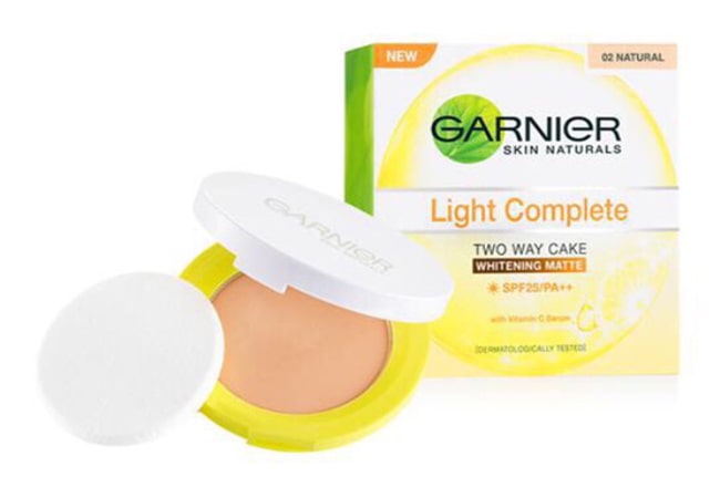 Merk Garnier memiliki produk bedak yang bagus untuk memutihkan wajah, mampu menghasilkan kulit wajah yang cerah dan tidak mengkilap. Tekstur yang ultra lembut sangat nyaman saat diaplikasikan di wajah, bedak ini mampu bertahan hingga 6 jam lamanya. Garnier Light Complete Visible Whitening Face Powder memiliki formula yang menggabungkan teknologi bedak mikro untuk kulit yang halus. Selain itu terdapat Vitamin C yang dapat menghambat produksi pigmen agar kulit kelihatan lebih cerah.
