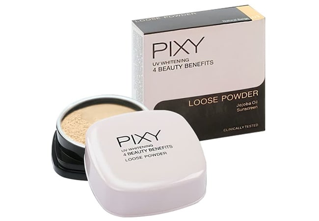 PIXY merk bedak yang bagus untuk memutihkan wajah, produk ini memiliki tekstur yang lembut sehingga mudah saat dibaur. Bedak PIXY UV Whitening Loose Powder sangat cocok untuk kulit orang Indonesia karena cendrung menawarkan warna kuning langsat. Bedak pemutih ini mengandung foundation dan untuk coveragenya sangat tipis.