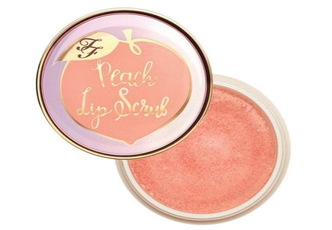 Too Faced Peach Lip Scrub merupakan produk pengelupas sel kulit mati yang tepat jika digunakan pada pemilik bibir kering agar menjadi lebih lembut, halus, dan sehat pastinya. Produk ini menggunakan formula yang kaya dan kental, terdapat kandungan minyak yang dapat melembabkan seperti jojoba oil dan minyak kelapa. Peach Lip Scrub adalah produk pengelupas kulit yang terbaik, dan hal tersebut lebih efektif karena penambahan kandungan gula didalamnya. Berbicara aroma, pastinya Anda akan menyukainya karena terdapat aroma buah persik dan krim.