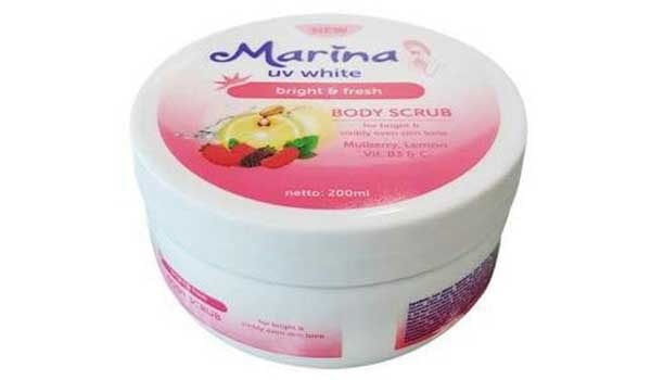 Marina sudah dikenal dengan produk perawatan tubuhnya, diforumulasikan khusus Bio Whitening Complex dengan vitamin B3 dan E. Selain itu terdapat kandungan Mulberry, Licorice, dan Lemon, kandungan tersebut membuat kulit menjadi lebih cerah dan sehat. Vitamin C yang terdapat pada produk body scrub lokal ini dapat menjadi antioksidan yang bagus untuk kulit agar dapat menangkal sinar matahari.