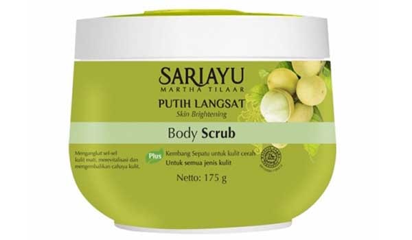 Sariayu sudah dikenal dengan produk kecantikannya mulai dari skincare, perawatan rambut, tubuh, dan lain sebagainya. Produk Sariayu Putih Langsat Body Scrub mengangkat sel kulit mati dan kotoran yang terdapat di pori-pori, dan sel kulit baru akan dirangsang untuk tumbuh. Scrub dengan bentuk butiran halus akan mengangkat kotoran sehingga kulit akan lebih cerah.
