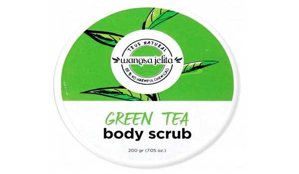 Wangsa Jelita Green Tea Body Scrub menggunakan kandungan teh hijau sebagai antioksidan alami, aroma yang menuegarkan dari ekstra teh hijau. Selain itu terdapat bahan alami lainnya seperti Milk Powder dan Ekstrak Virgin Coconut Oil yang dapat memutihkan serta melembabkan kulit anda. Dapat digunakan untuk semua jenis kulit, dan rasakan perubahannya dengan body scrub lokal yang bagus ini.