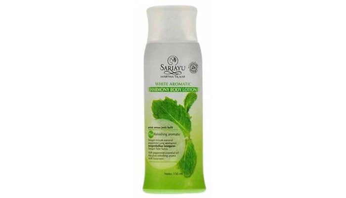Body lotion terbaik dari Sariayu ini telah mengandung tabir surya sehingga kulit anda lebih aman terhadap sinar matahari. Jika anda malas untuk menggunakan sunblock terlebih dahulu, pilihan menggunakan body lotion ini adalah tepat. Yang membuat Sariayu White Aromatic Harmony Body Lotion berbeda dengan lainnya adalah Aroma Peppermint yang dibawa oleh produk body lotion tersebut.